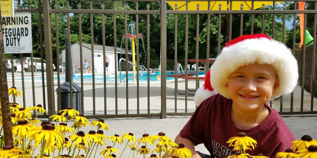 Boy with Santa Hat by Pool